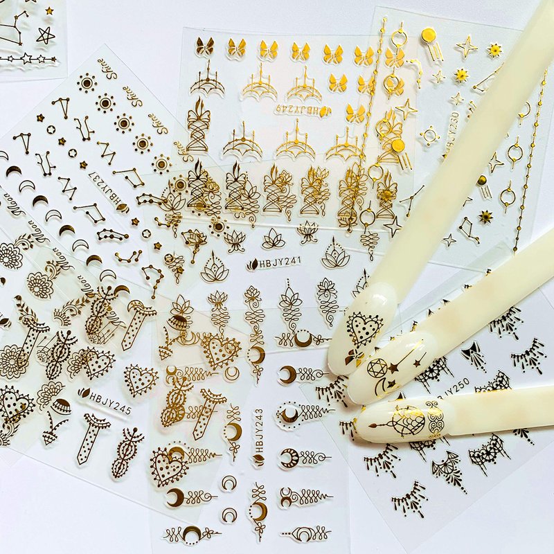 - 24 different gold color nail art sticker sheets;