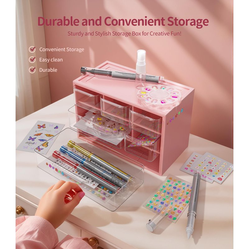 - 【Convenient Storage】"Organized Fun with a Handy Storage Box!" Keep all your nail art tools and accessories neatly stored in a 3-tier drawer box. Easy to organize and perfect for on-the-go creativity!