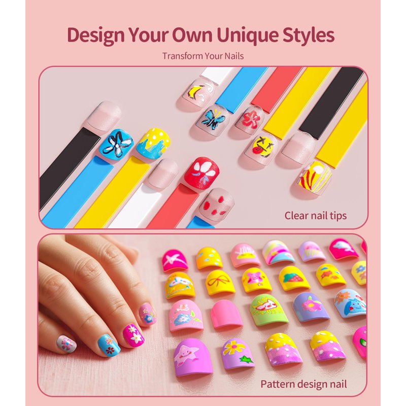 - 【Instant Glamour】Transform nails in seconds with easy-to-apply 3D press on nail pieces. Perfect for a stylish and fun manicure without the mess! Also the 3 size clear nail tips will let your little girls own their nail art with fun .
