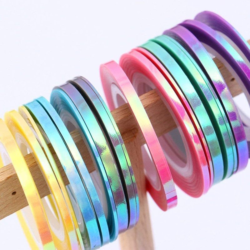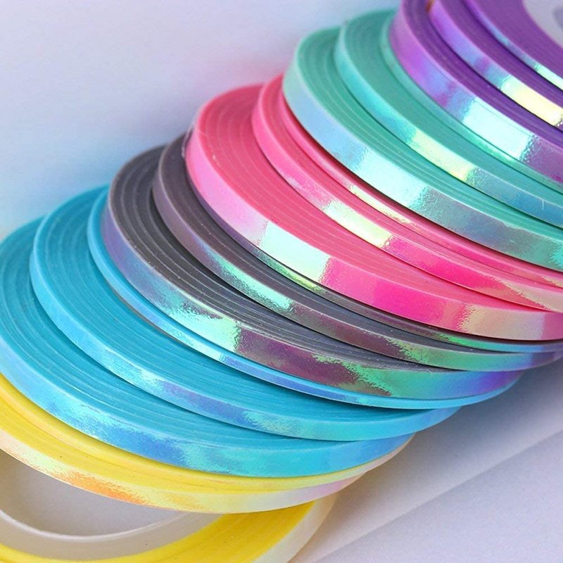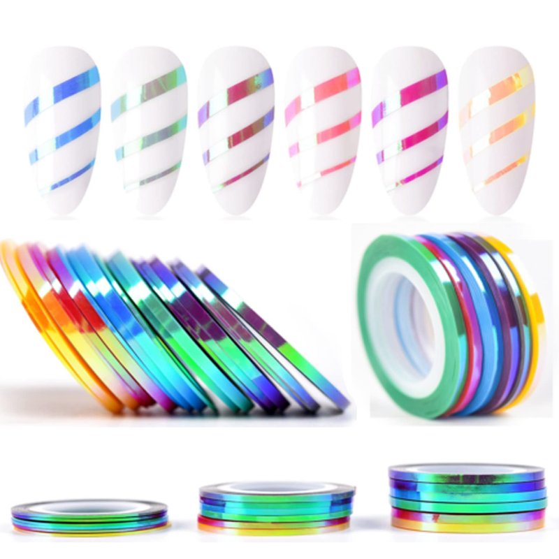 - These nails strips tape can be used to design your pinstripe art, nail patterns, highlight etc.Aslo nail striping tape for nail art can be used with UV Gel, Acrylic nail art etc.Size:18pcs 1mm 2mm 3mm mermaid nail striping tape lines.