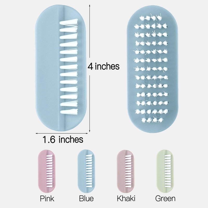- 2 sides nail brush for cleaning fingernails and under nails: One side the bristles are longer and less stiff to clean hands fingers and fingernails; and the other side bristles are shorter and stiffer to remove dirt under nails