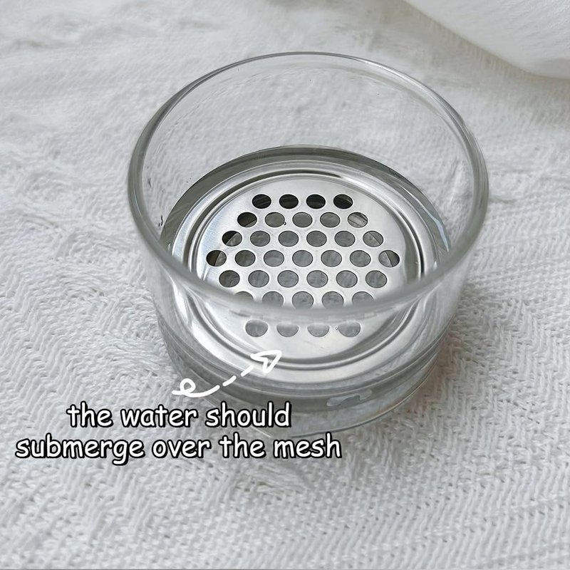 2. Pour pen wash into the cup and make the water is just over the mesh.