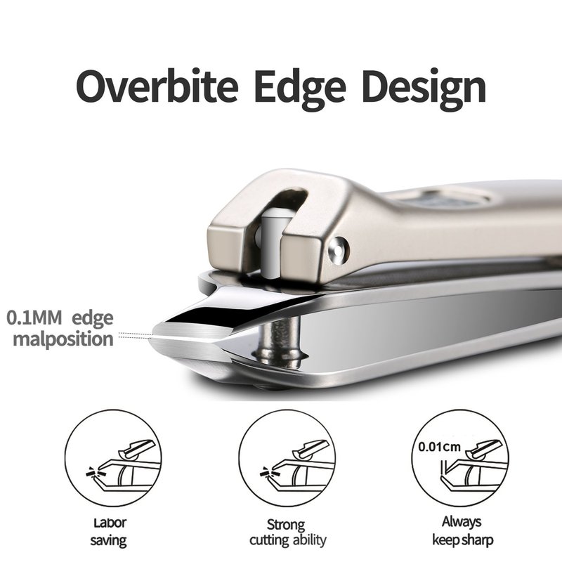 - Unique Handle Design - The angled nail clippers provide comfortable and secure grip, easy and optimum control. Super handy build-in nail file design. Special electroplating process and clean-coat protection on surface achieve anti-corrosion and easy grip
