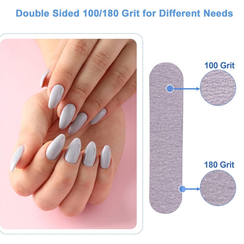 - TWO-SIDED NAIL FILES WITH 100/180 GRIT: These double sides emory board nail files offer 100 grit on one side, perfect for shaping and buffing fake and acrylic nails, and 180 grit on the other side, ideal for shaping natural nails and preparing them for gel nails.