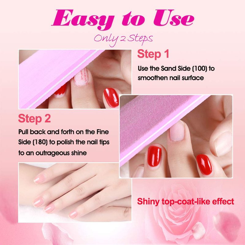Nail files and buffers made of high quality sponge, sturdy plastic board and emery board materials, Designed with rounded edges and double sides, Trimming and shaping your nails for a desired shape or length without damaging the nail.