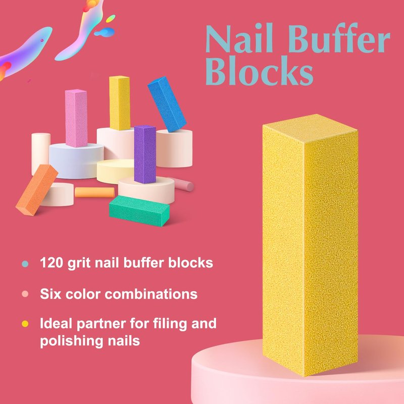 - Sponge Nail Buffer Block: 120 grit nail buffering blocks are made of high quality sand surface sponge, waterproof and durable.Ideal partner for repairing acrylic and natural nails.Ergonomic design of nail brushes for cleaning fingernails.