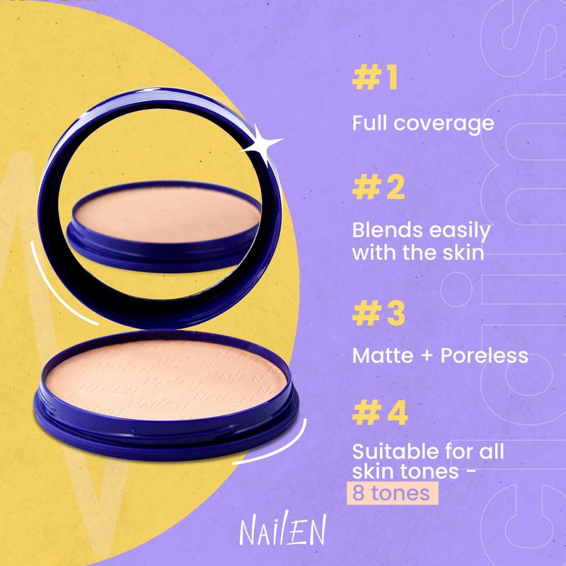 Nailen Compact Makeup Setting Powder with Matte Finish, Shine Control, Full Coverage - Ideal for All Skin Types & Poreless Smooth Look - Tone 1, (1 Count)