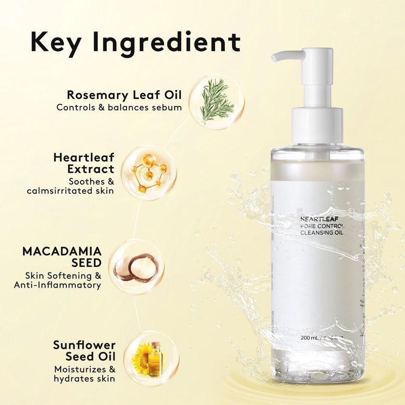 - Deep Cleasing Oil : Heartleaf pore control cleasing oil,effective in eliminating makeup residue, blackheads and sebum.