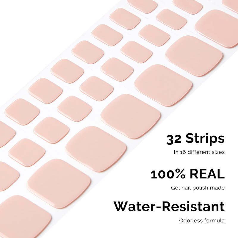 NAILOG Semi Cured Gel Nail Strips, Toe Nail Polish Strips with Glossy Gel Finishing | 32 Pieces Long Lasting Pedi Stickers | Dusty Rose