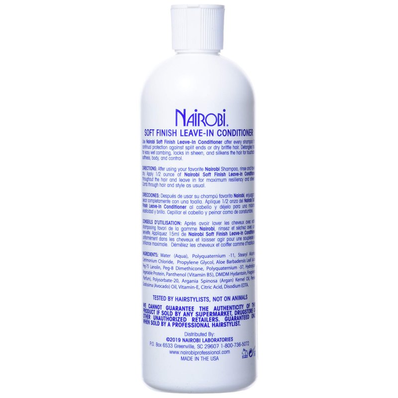 Soft Finsh Leave-In Conditioner NairobiProtects against split ends and dry, brittle hair. Detangles hair for easy wet combing, locks in sheen and silkens the hair shaft. Conditioner