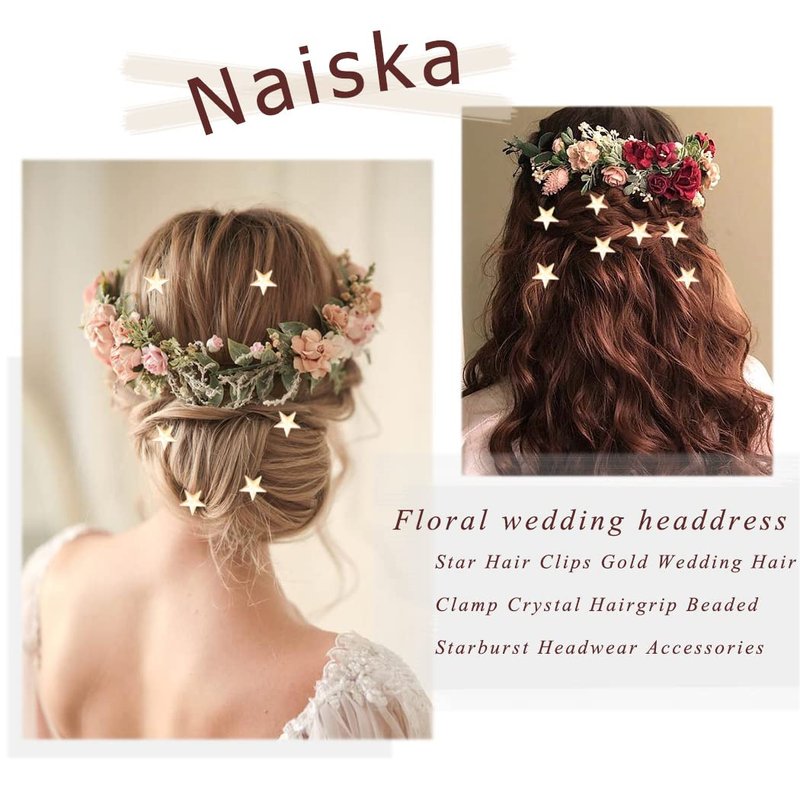 NAISKA 8PCS Gold Star Hair Clips Spiral Hair Pins Wedding Stars Hair Accessories Bridal Hair Decoration Braid Clips Hair Jewelry for Women(Gold)