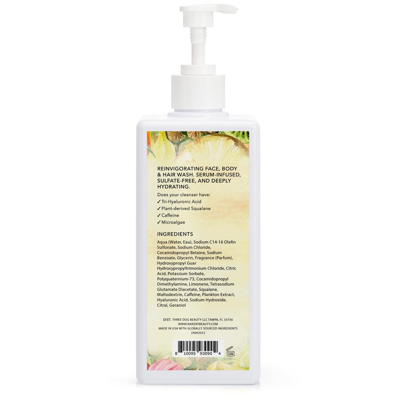 - POWERHOUSE SERUM-ACTIVE INGREDIENTS - This foaming face wash & oil cleanser is infused with tri-hyaluronic acid, caffeine, plant-based squalene, arctic micro algae, & other natural ingredients to reinvigorate the skin from head to toe. Our all natural body wash for women helps improve dry, rough-textured skin with one cleansing application.