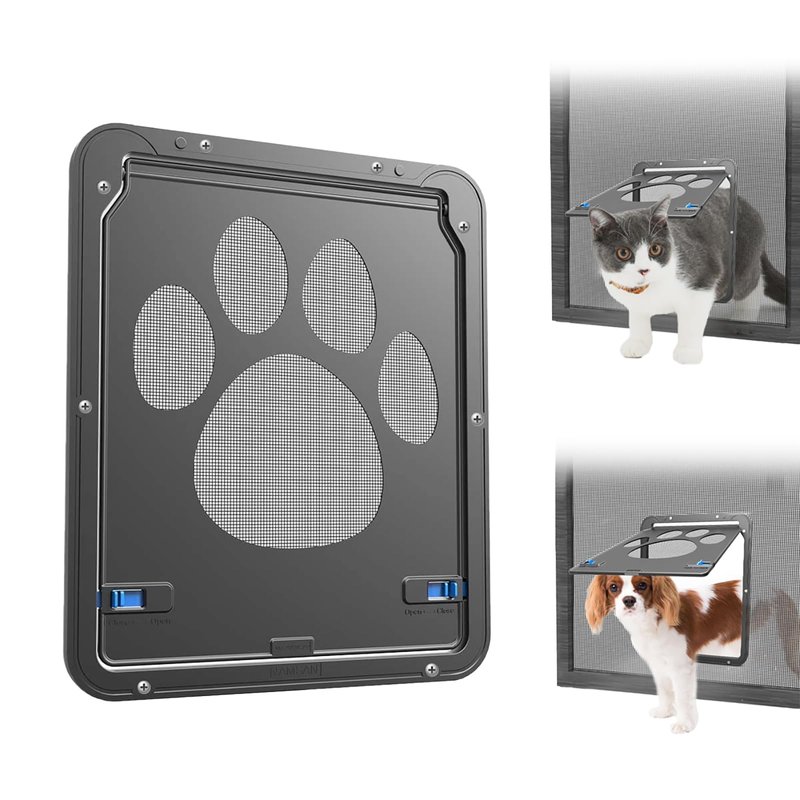 NAMSAN Cat Door for Screen Door, Flap Opening 8 x 10 inches, Cat Door for Window Screen, Magnetic Self-Closing Small Pet Door for Sliding Door, Lockable, Black