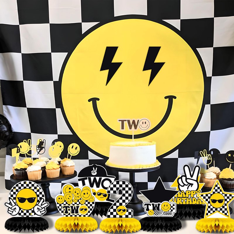 NANAGALI 9 Pcs Two Cool Honeycomb Centerpiece Two Cool Birthday Party Decorations - Happy Face 2nd Table Toppers Centerpieces Birthday Party favors for Boys