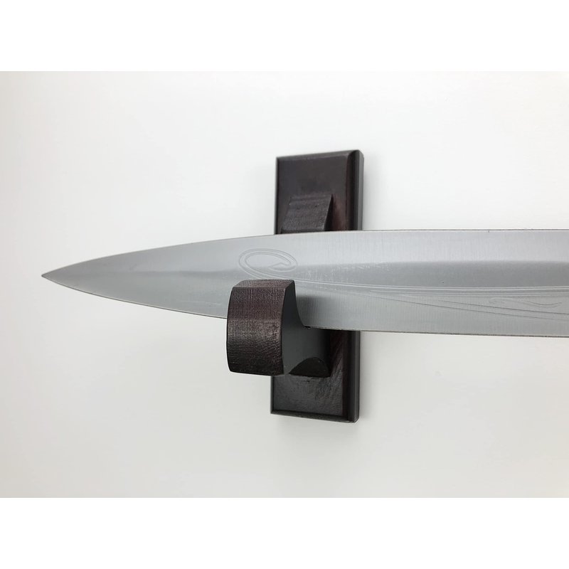 For people who love martial arts weapons, you always need a nice way to display your collections. This wall mount sword holder will proudly display your unique items like katana swords, Axes, Knives, Daggers, Lightsabers and so on.It is made from premium quality solid pinewood with nice brown painting. Its elegant and strong construction will hold a sword or axe safely.You can easily hang it on your wall with the included hanger on the back. Simply place a screw in the desired wall and hang.It comes with 2 separated hooks so you can use it to fit various sizes weapons.This sword rack is measured 4.7" long, 1.6" wide and 3" high, the inner diameter is 1.3 inch or 3.5cm, it's the right size to hold almost all weapons you usually have.A few great features: Well Made: Strong and sturdy constructionDecorative Design: Brings a rustic and vintage taste for your home or officeHolds various length of martial arts weapons and other itemsMade with premium woodAmazing gift idea for swords and other martial arts weapons lovers