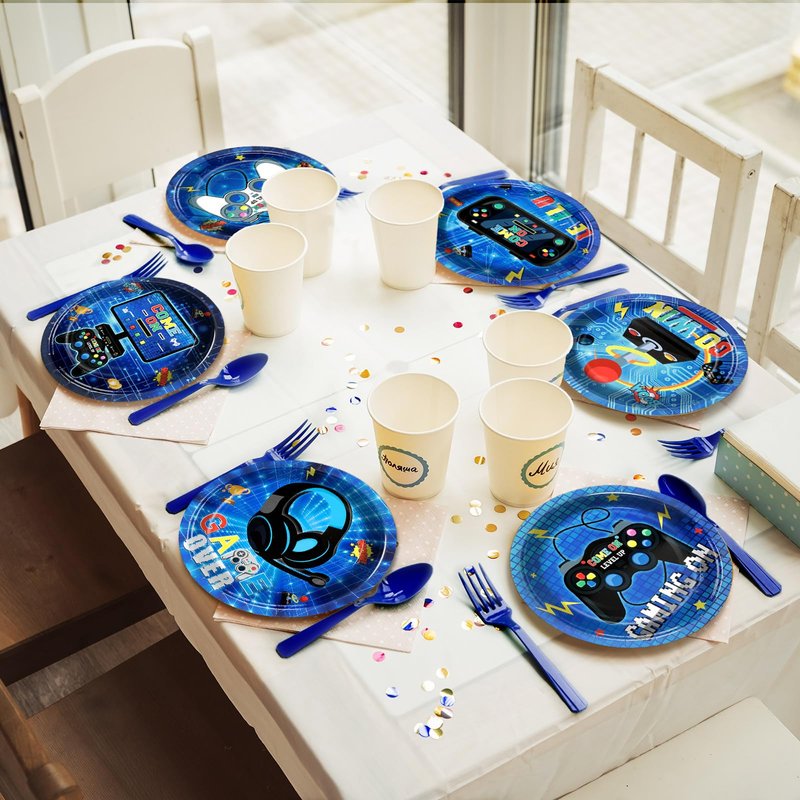 - Wide application: Whether you're hosting a birthday party, baby shower, bridal shower, gaming tournament, indoor and outdoor theme parties, graduations, holidays, festivals, and other events and parties. These blue video game tableware party decorations can pair well with blue gamer tablecloth, blue gaming banners, and blue game party backdrop to give your guests unforgettable memories.
