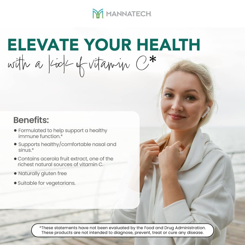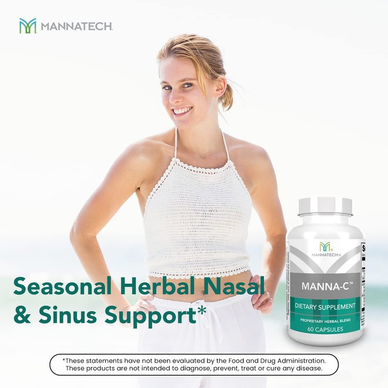 Nasal and Sinus Support with Immune Defense – Promotes Clear Breathing and Respiratory Health, Vitamin C & Glycans Blend for Daily Wellness – Manna-C 60 Capsules, Proprietary Plant-Based Formula