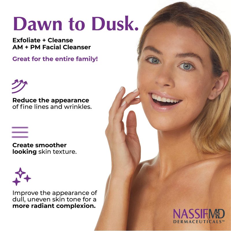 NassifMD Dawn to Dusk Foaming Facial Cleanser Vegan Cleanser Face Wash for Women, Oil Cleanser for Face, Gentle Face Cleanser Cream Cleanser Natural Face Wash for Dry Skin, Hydrating Face Wash