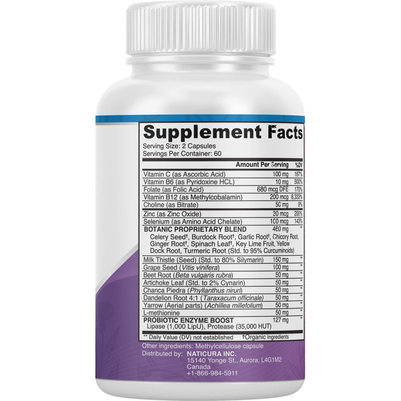 Naticura Liver Cleanse Plant-Based Formula - Vegan Full-Spectrum Supplement with Milk Thistle, Vitamin C and Zinc for Liver Function and Immune Support - 120 Capsules - No Fillers or GMO