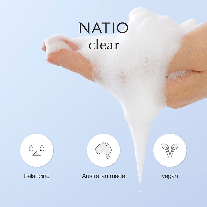 Natio Australia Clear Oil Control Foam Cleanser, 5 ounce - Acne Face Wash - Face Cleanser with Tea Tree, Witch Hazel - For Oily, Acne Prone Skin