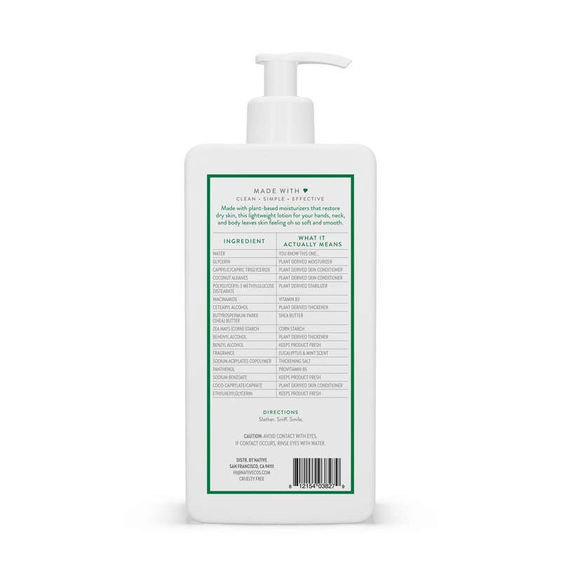 Native Body Lotion Contains Naturally Derived Plant-Based Moisturizers for Women and Men | Restores Dry Skin, Eucalyptus & Mint, 16.5 fl oz