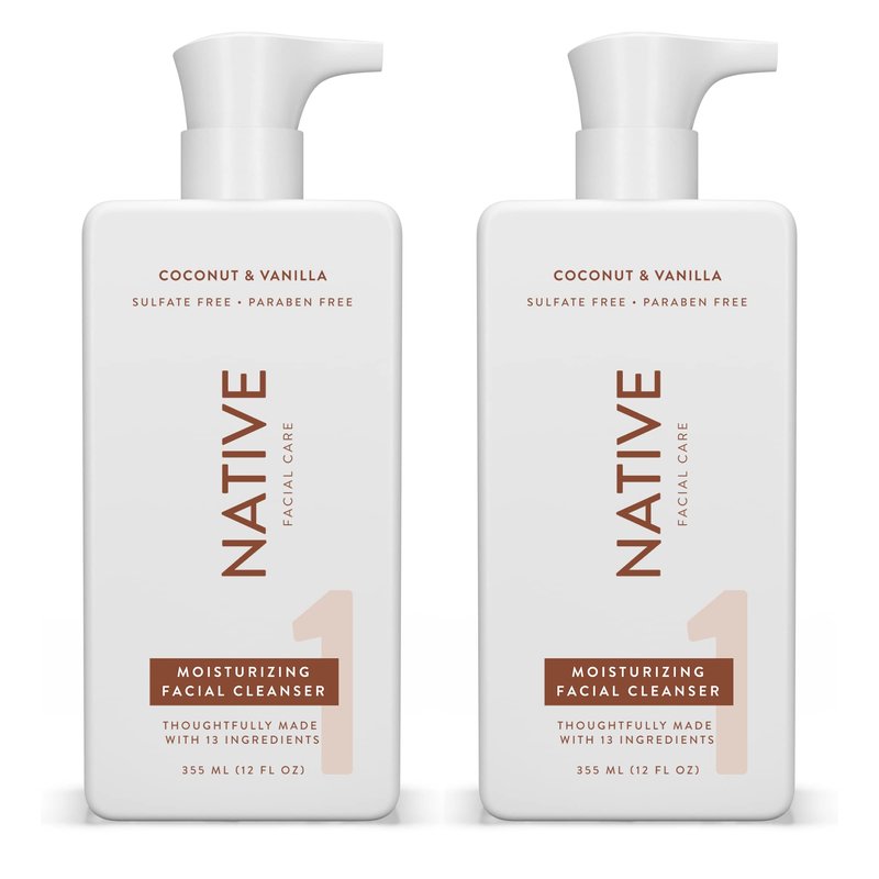 Native Moisturizing Coconut Vanilla Face Wash - 12 fl oz (2 Pack), Daily Facial Cleanser for Dry Skin
