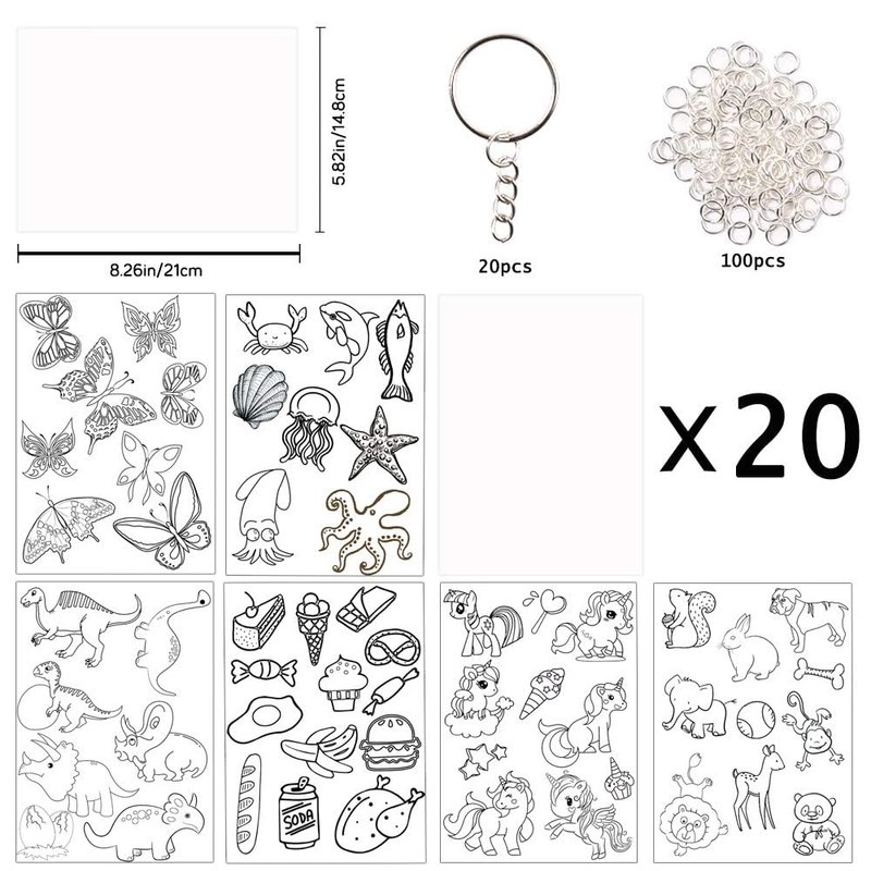 - Endless Possibilities: Let your imagination run wild with 20 blank shrink dink sheets, 6 traceable pictures, and 120 keychain accessories.
