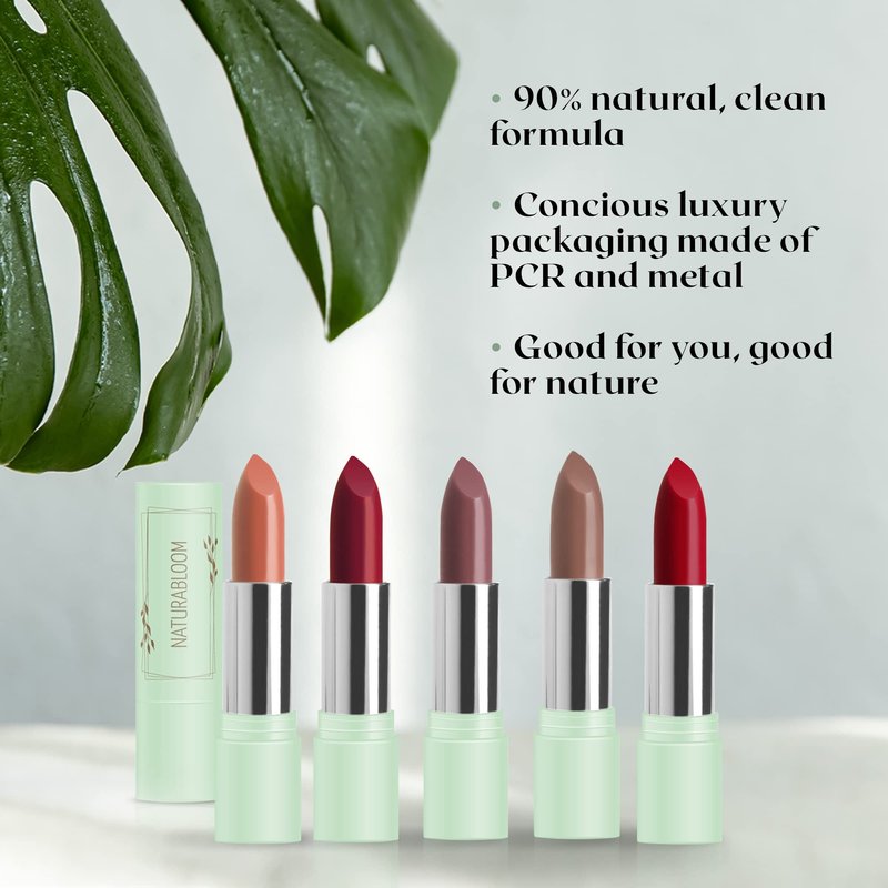 NATURABLOOM Vegan Lipstick (Dusty Rose) - Sensational One-Stroke Long Lasting Lipstick from Natural Oils & Butters Full-Coverage Lip Color w/Shea Butter & Coconut Extact - Premium Hydrating Lipsticks