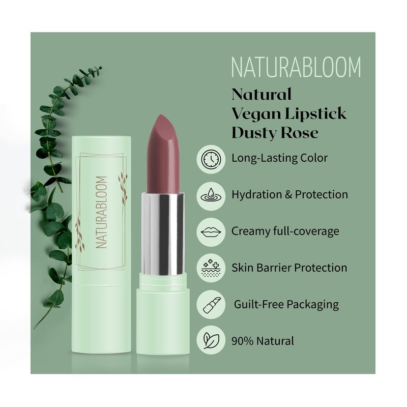 Naturabloom Vegan Lipstick (Dusty Rose) - Sensational One-Stroke Long Lasting Lipstick from Natural Oils & Butters Full-Coverage Lip Color w/ Shea Butter & Coconut Extract - Premium Hydrating Lipsticks