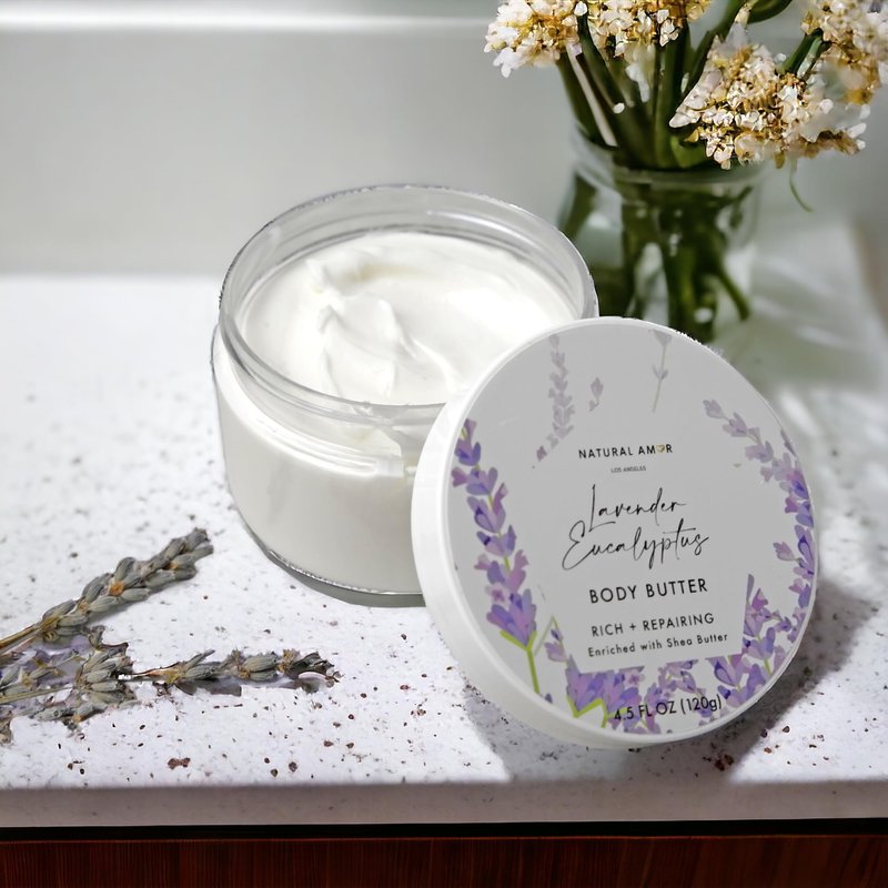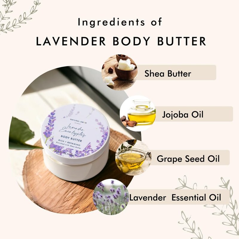Natural Amor Lavender Body Butter 120G, Hydrating Moisturizer with Shea Butter, Jojoba Oil, Coconut Oil