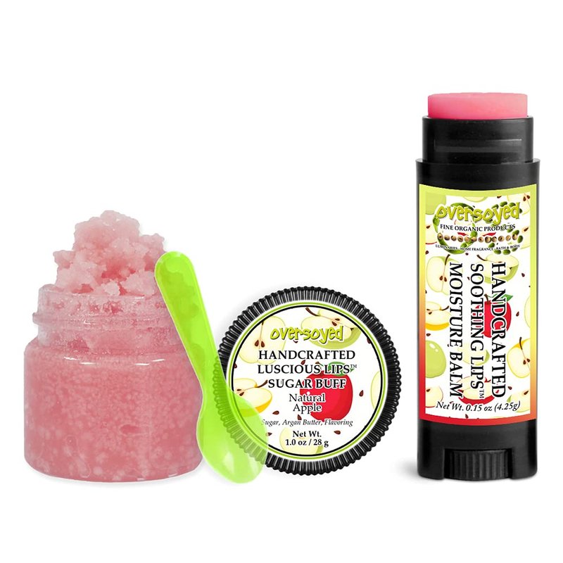 Natural Apple Soothing & Luscious Lips by OverSoyed Exfoliator & Chapped Lip Repair Lip Care Combo | Artisan Handcrafted to Order Juicy Apple Dewy Lemon Subtle Floral Flavored Exfoliating Sugar Lip Scrub & Lip Moisturizer Balm Gift Set
