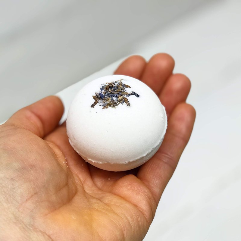 Bath Bomb Ingredients: Epsom Salt, European Salt, Baking Soda, Arrowroot Powder, Citric Acid, 100% essential oils of Lavender, Patchouli & Eucalyptus. Coconut & Hemp Seed Oil. Organic Earl GreyTea.