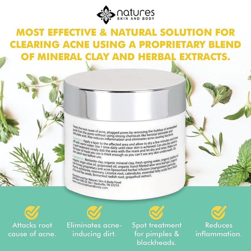 Natural Clear Acne Treatment Mask Addresses The Root Cause Of Acne, Plugged Pores.