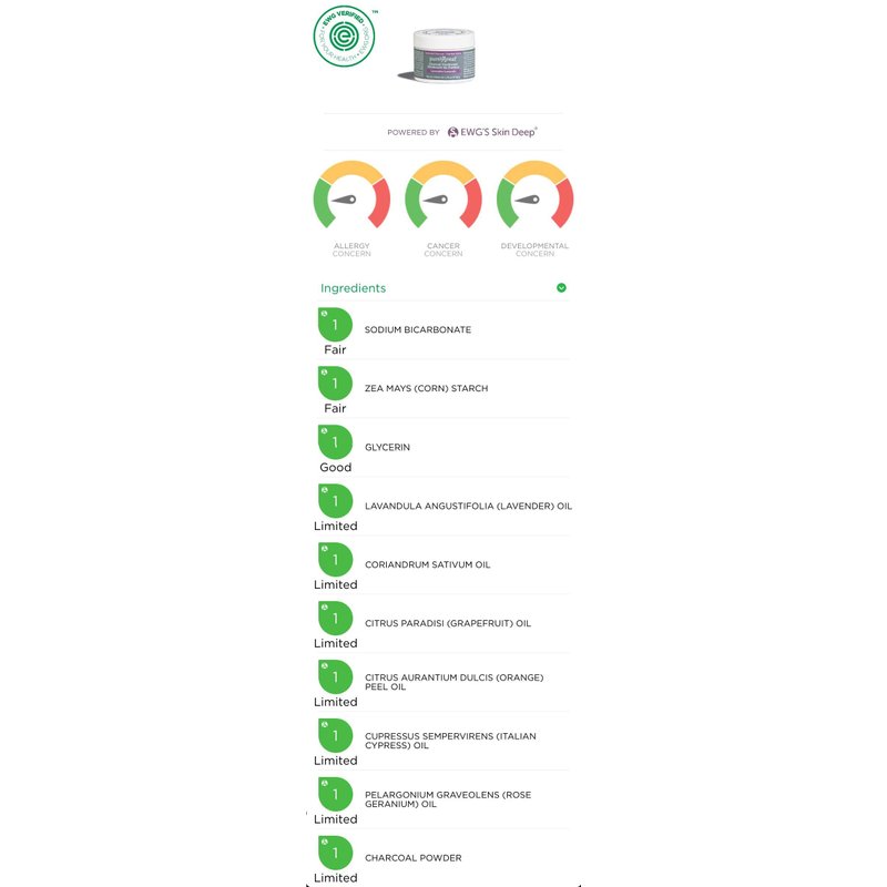 - WHY CUSTOMERS LOVE PURELYGREAT: Our products are all-natural, vegan and cruelty-free. We put your wellness first by creating natural deodorants that are EWG Verified to ensure they meet the strictest standards for your health. Feel confident using a deodorant that is aluminum-free, paraben-free, BPA free, and triclosan-free. Our charcoal deodorant is naturally scented with essential oils and provides all-day protection to keep you smelling your best while being safe and healthy!