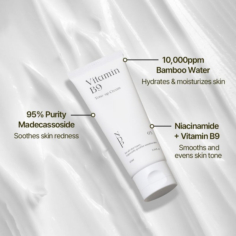- [Reduce Dullness and Even Skin Tone] - Infused with niacinamide, 95% purity madecassoside and bamboo water, our Vitamin B9 Tone-up Cream will give you a radiant dewy glow and even your skin tone with consistent use over time.