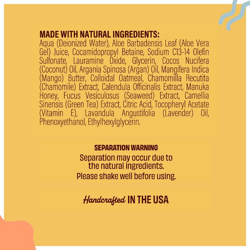 - Natural Dog Bath Shampoo is made in the USA and is formulated with plant-based ingredients like manuka honey, argan oil, aloe vera, & chamomile to provide gentle, cleansing, itch relief for dogs.