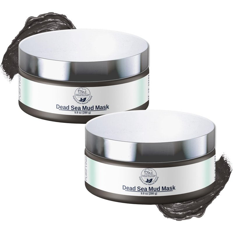 Natural Elephant Dead Sea Mud Mask - Deep Pore Cleansing for Face & Body - Acne, Blackheads, Oily Skin – 100% Natural Skin Care – Tightens Skin- for Woman and Men - 9oz (Pack of 2 (Two 9.9 oz Jars))