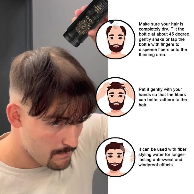 - Easy to Use: Simply sprinkle the hair fibers over thinning areas or bald spots to instantly cover up the gaps. No need for messy glue or tapes, making it easy to apply and remove.