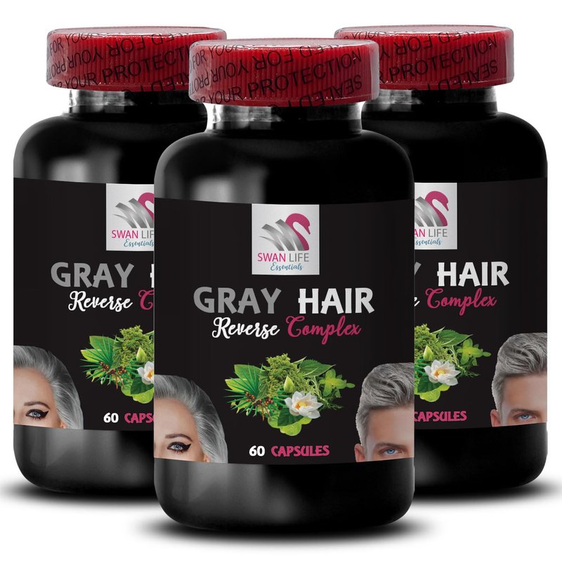 Natural Hair Complex - GRAY HAIR REVERSE - True color, Fresh vibrancy, Hair pigmentation, Restore vibrancy, Hair shade revival, Dynamic hair, Luminous hair, Fresh hair color 3 Bottles 180 Capsules