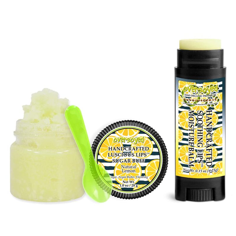 Natural Lemon Soothing & Luscious Lips by OverSoyed Exfoliator & Chapped Lip Repair Lip Care Combo | Artisan Handcrafted to Order Sparkling Citrus Flavored Exfoliating Sugar Lip Scrub & Lip Moisturizer Balm Gift Set