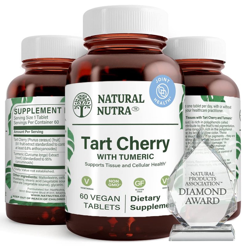 Natural Nutra Tart Cherry Extract with Turmeric Curcumin, Joint Health, Vegan, Vegetarian, Gluten Free, 60 Tablets