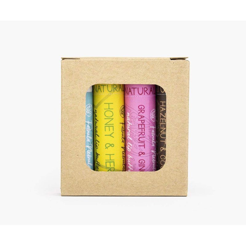 This four pack by Fabula Nebulae Includes: 1x Peppermint lip butter 1x Grapefruit and Ginger lip butter 1x Hazelnut Cocoa lip butter 1x Honey and Herb lip butter