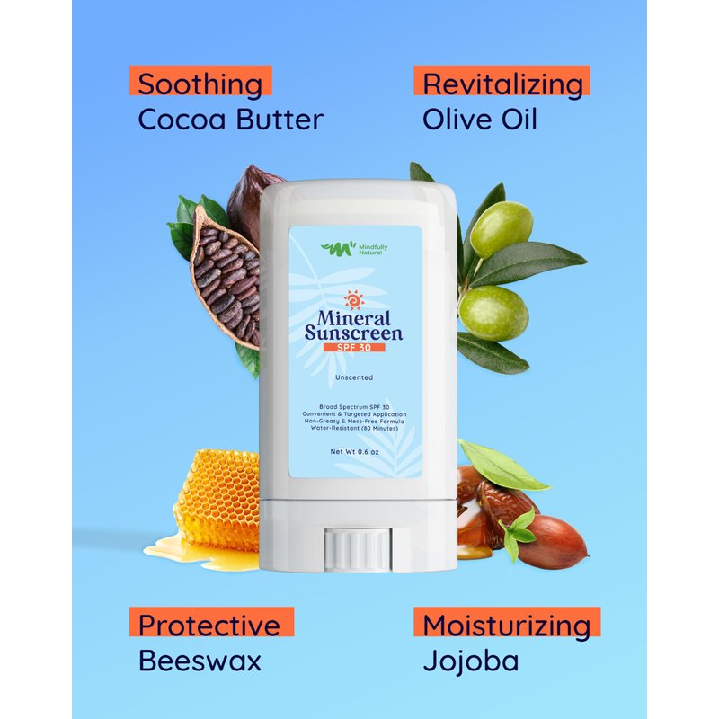 - Mindfully Natural's Face Sunscreen Stick is your secret weapon against harmful UV rays; Compact and portable, this non toxic sunscreen stick fits in your pocket for on-the-go protection