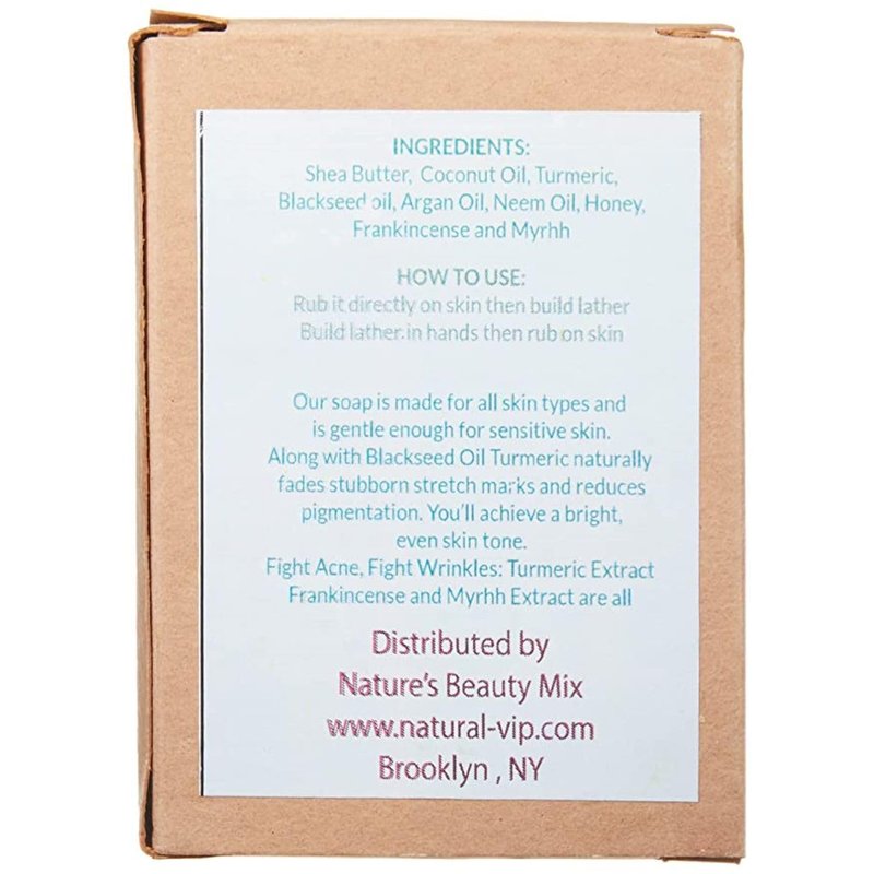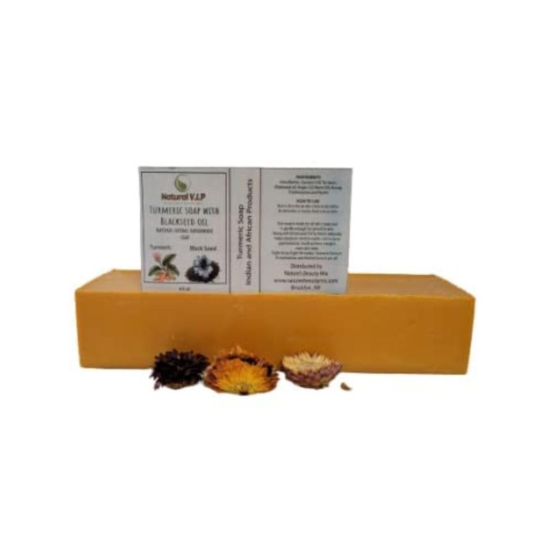 Experience the ultimate in skincare with Natural V.I.P Turmeric Soap, a meticulously crafted solution to nourish and rejuvenate your skin. Our soap is a testament to our commitment to your skin's well-being, formulated with essential oils and devoid of any harmful chemicals. Immerse yourself in the goodness of all-natural ingredients, carefully selected to enhance your skin's tone and overall health. Whether you have sensitive or oily skin, our soap provides a gentle yet effective cleansing experience, leaving your skin feeling irresistibly soft and well-hydrated, without the worry of any adverse side effects. We understand the frustration of spending on cleansers that only leave your skin dry and irritated. Break free from that cycle and embrace the Natural V.I.P Turmeric Soap difference. Crafted from the finest ingredients nature has to offer, including Turmeric, shea butter, coconut oil, black seed oil,honey, frankincense, and myrrh, our soap delivers a luxurious skincare experience like no other. Say goodbye to animal testing and artificial ingredients, as our soap is a testament to our commitment to cruelty-free and pure skincare. Elevate your skincare routine with Natural V.I.P Turmeric Soap — a true celebration of nature's bounty for radiant and healthy skin. Try it today and witness the transformative difference for yourself!