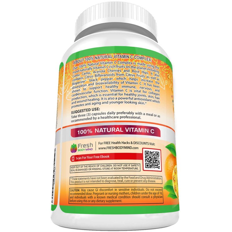 - 100% Natural Vitamin C Immune and Collagen Support: Our Powerful & Potent 100% Natural Vitamin C Formula is made Exclusively from The Most Vitamin C Rich Superfruits Found on the Planet - Acerola Cherry, Rose Hips and Camu Camu and contains Zero Artificial Ascorbic Acid. Our Vitamin C Capsules are the Ideal way to get Your Natural Daily Dose of Pure, Clean Vitamin C for Immunity Boost Support with over 550% Daily Value Per Serving.*