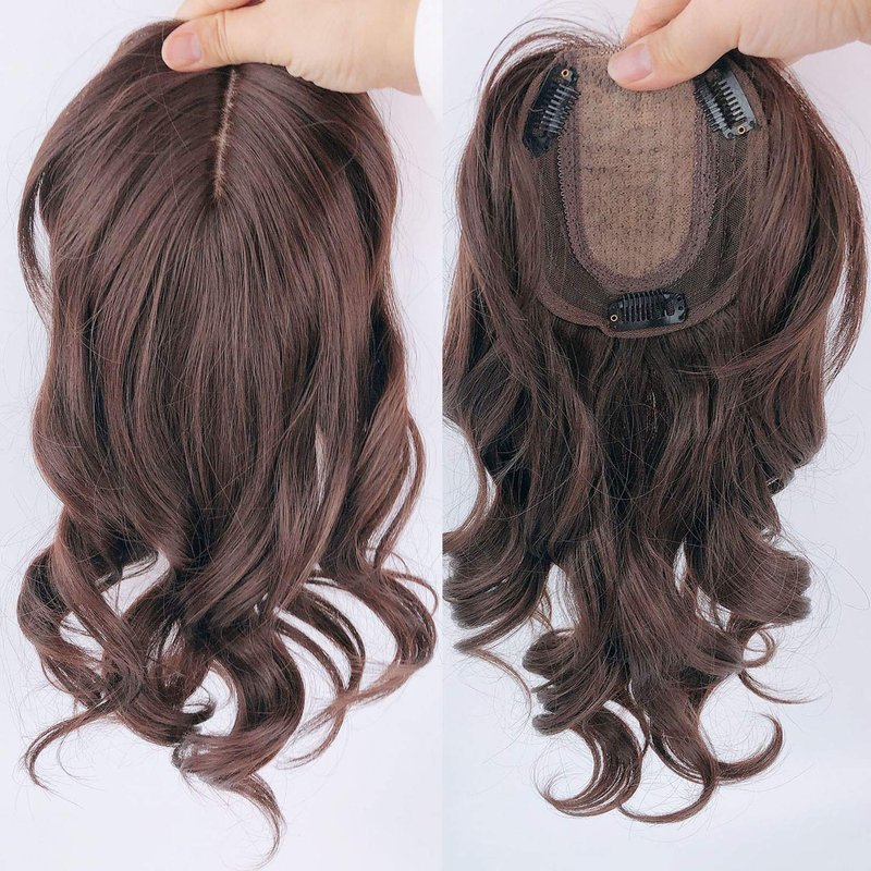 Natural Wavy 14" Middle Part Hair Topper 10x13cm Mixed Hair Clip in French Style Wig Off Black