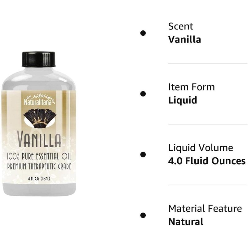 Naturalitana Best Vanilla Essential Oil (4oz Bulk Vanilla Oil) Aromatherapy Vanilla Essential Oil for Diffuser, Soap, Bath Bombs, Candles, and More!