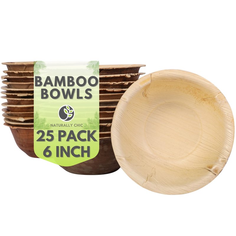 Naturally Chic Palm Leaf Bowls - 6 Inch Round - Bamboo Like, Eco Friendly, Disposable, Compostable and Biodegradable Bowls for Catering, Weddings and Parties
