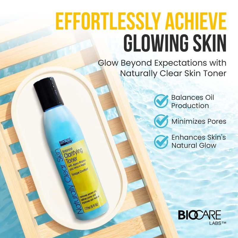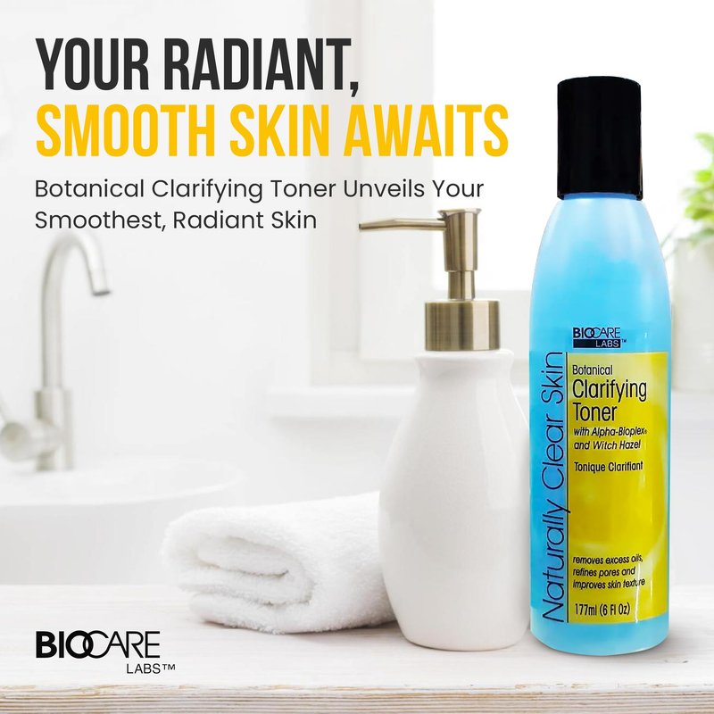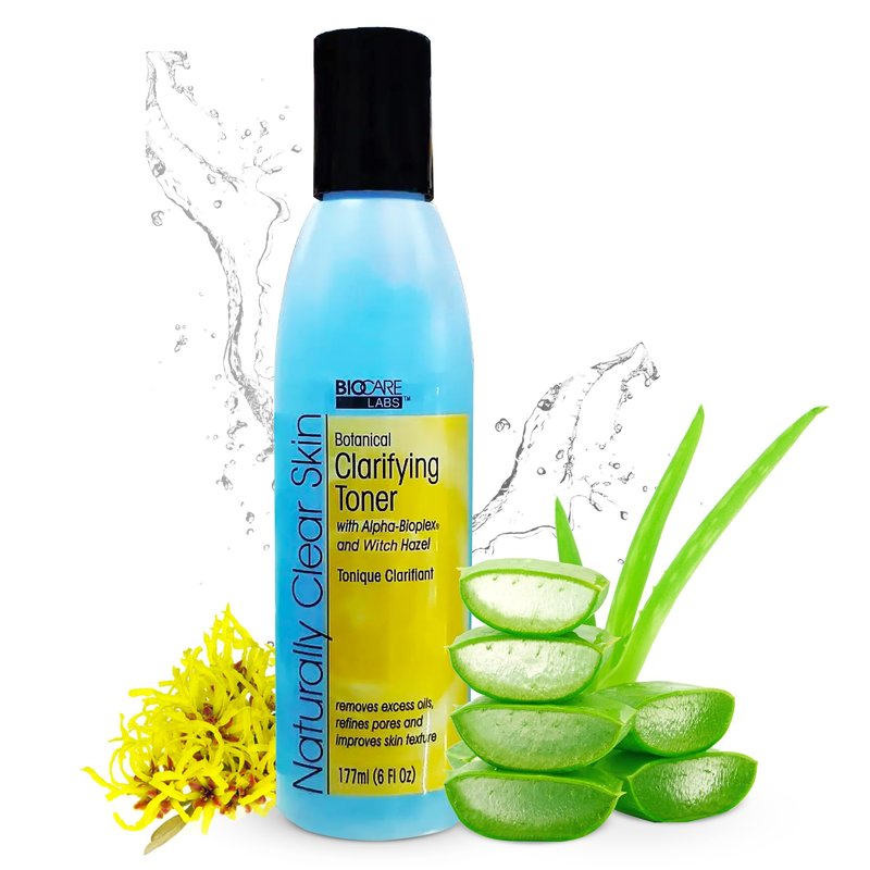 Naturally Clear Skin Botanical Clarifying Toner - Infused with Aloe Vera, Witch Hazel & Alpha-Bioplex, Refines Pores, Exfoliates & Conditions, Oil Control, Gentle Glow for Sensitive Skin 6 oz