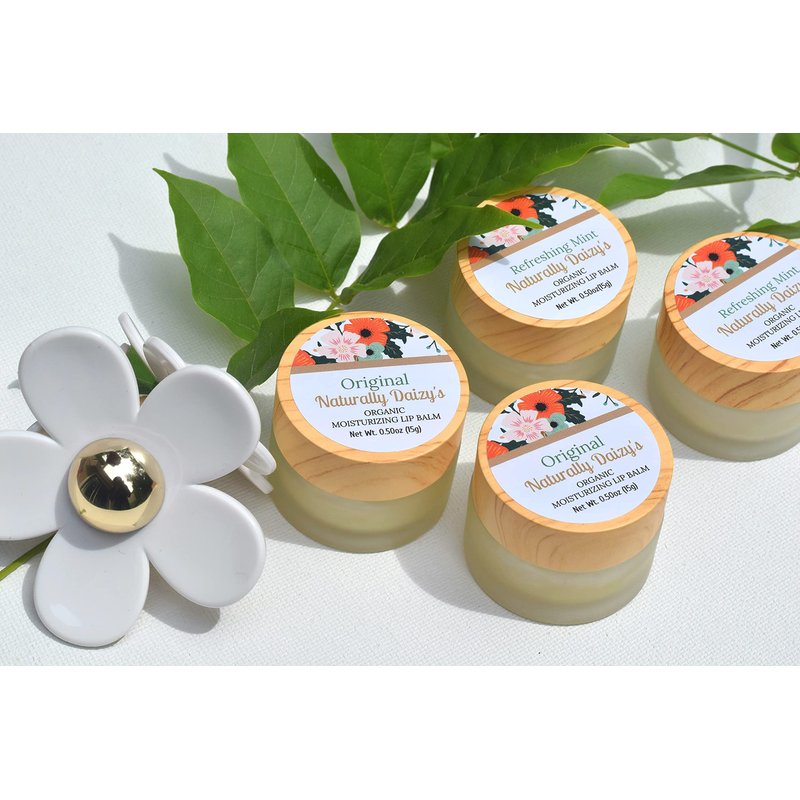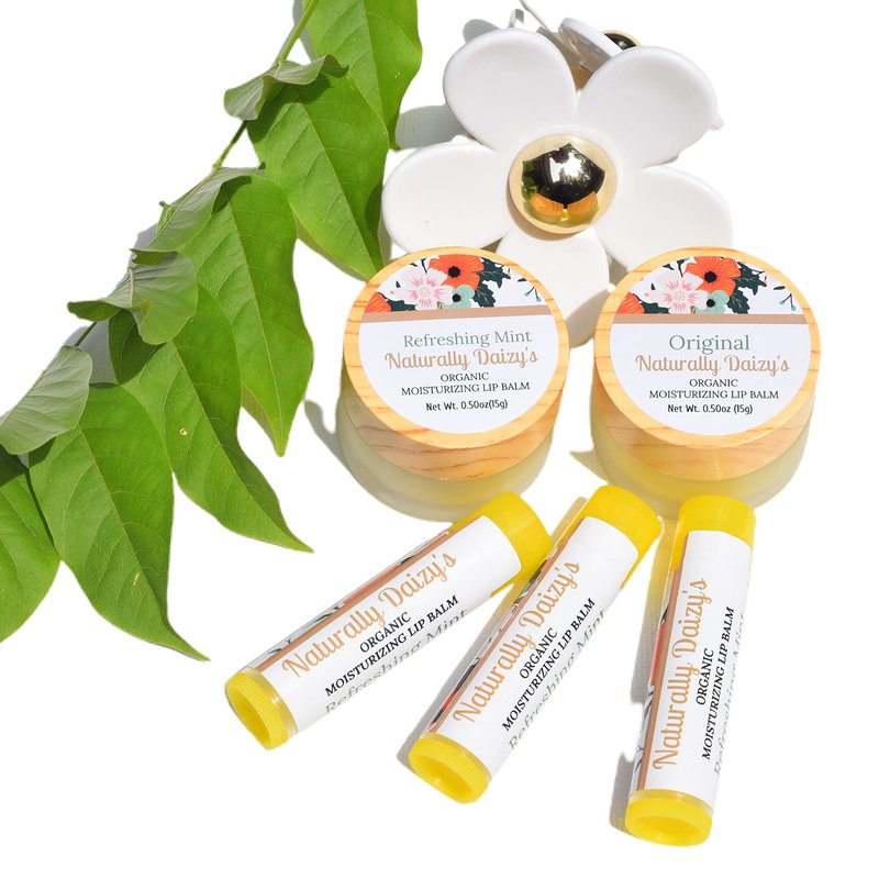 Naturally Daizy’s Organic Lip Balm- 100% Natural Moisturizer, 0.50 oz/15g, (Original or Refreshing Mint), Light Weight Shine (Original)